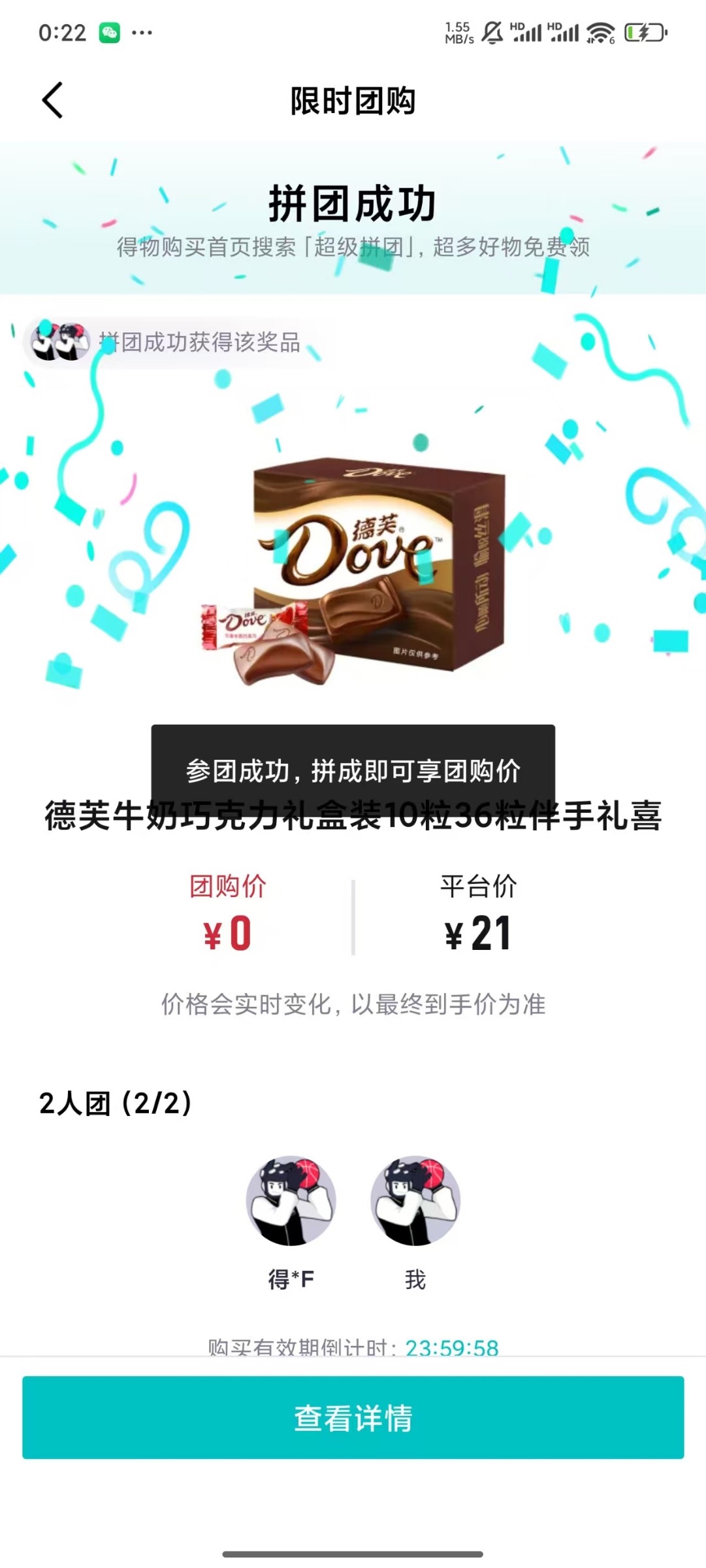首先拿一个没注册过得物的手机号注册,不用实名直接去首页搜索超级拼团,然后第1个就是巧克力,点进去,然后分享一下自己的那个助力连接分享的微信哪里都行,然后复制一下 然后再登录自己得物的老号助力 我测试过了新号助力不了,只能老号助力