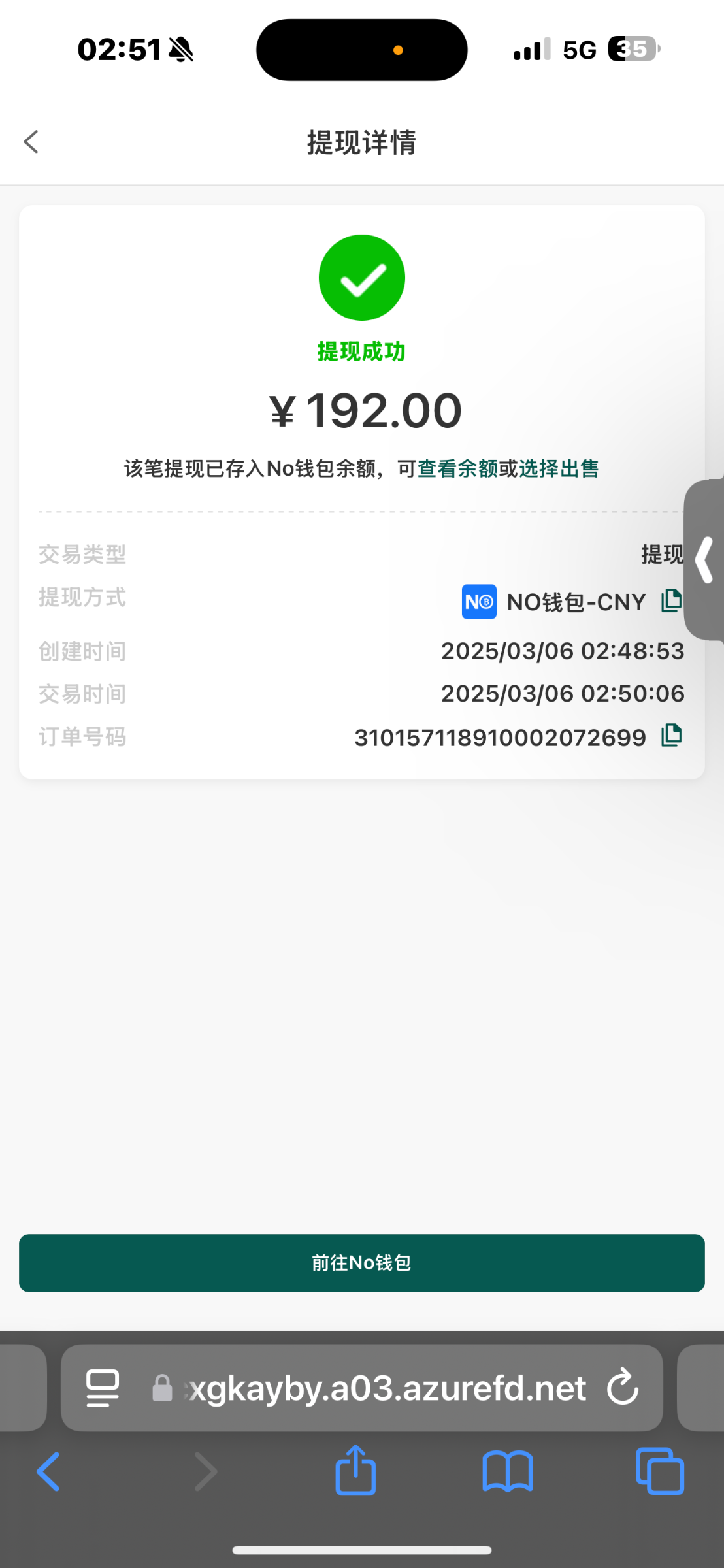 提现到账