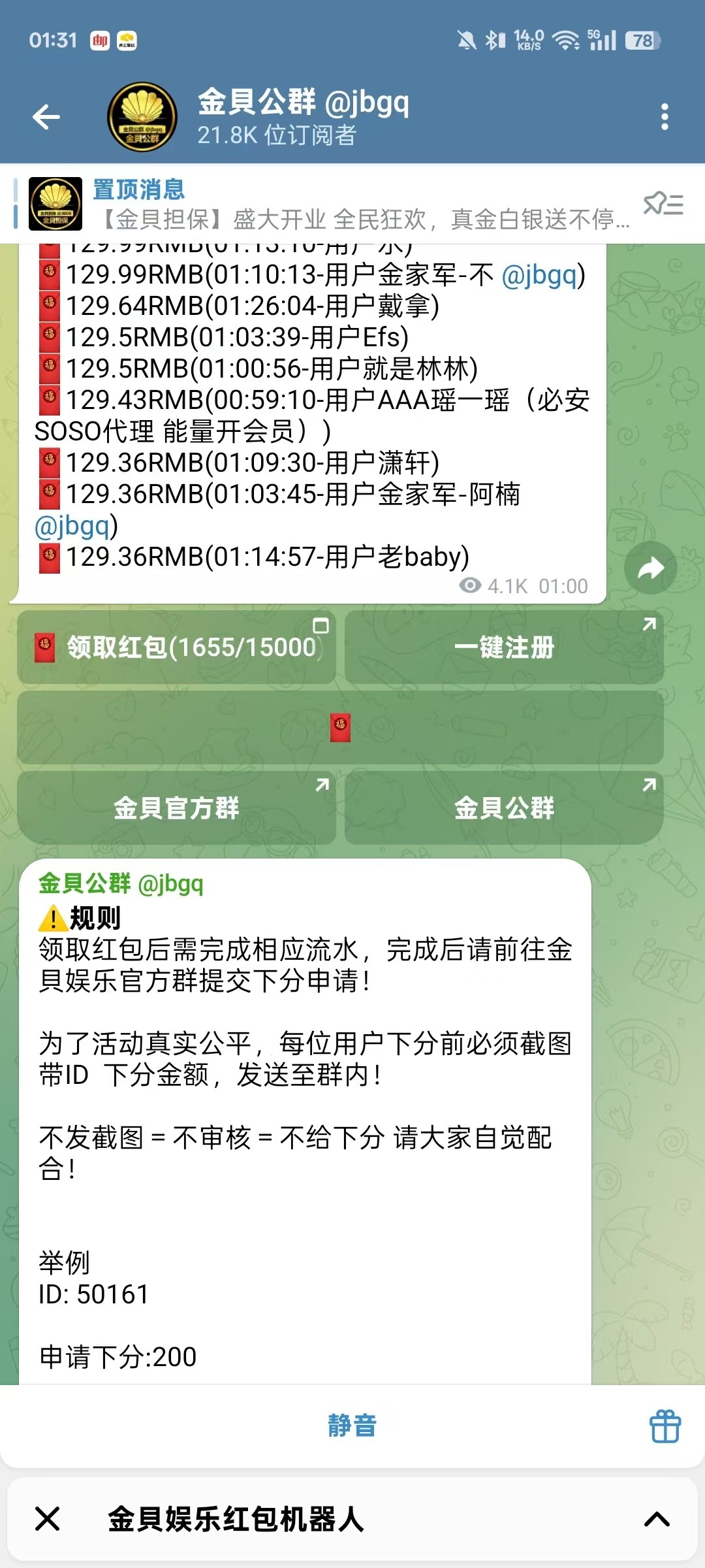 金币发了一百万人民币彩金,一万五千包,进度很慢,可能会持续几个小时才能抢完,人均一百,不要一个设备一个ip多号抢,出款查ip设备的,飞机频道 @jbgq ,还有一万三千包,兄弟们冲