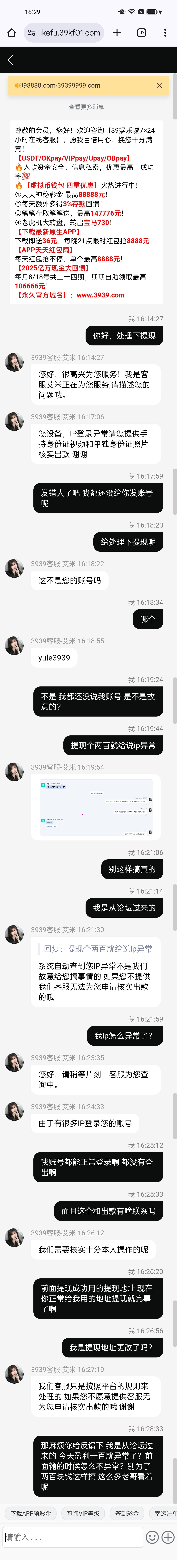 前面一两次提现都正常,第三次盈利了100提现就要手持,黑台杀猪盘一个