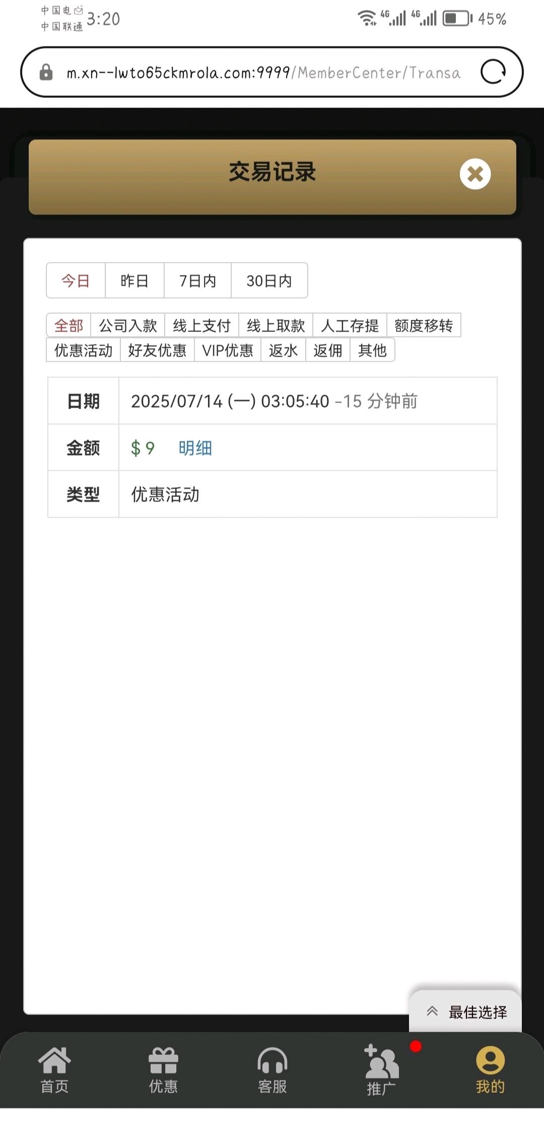 刚刚来电话送了9,找客服申请电话彩金