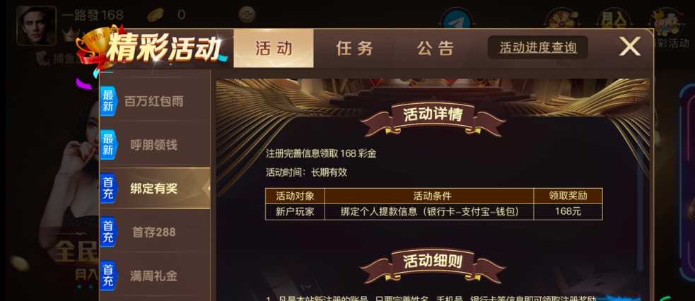 【168棋牌】注册彩金