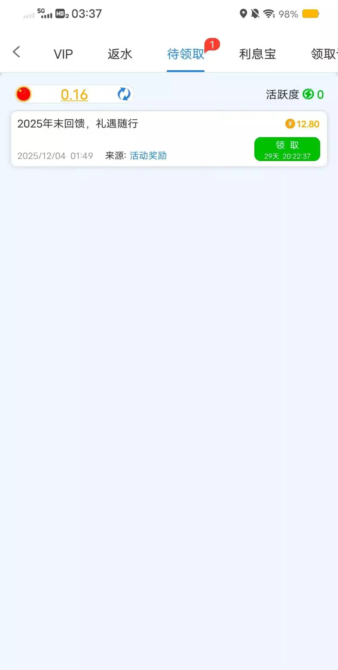 262.com 上号看见能领12块8彩金,但是要最近三天有充值≥50元以上的可以去看看,我262没赢过,不会充了(严禁充值!)