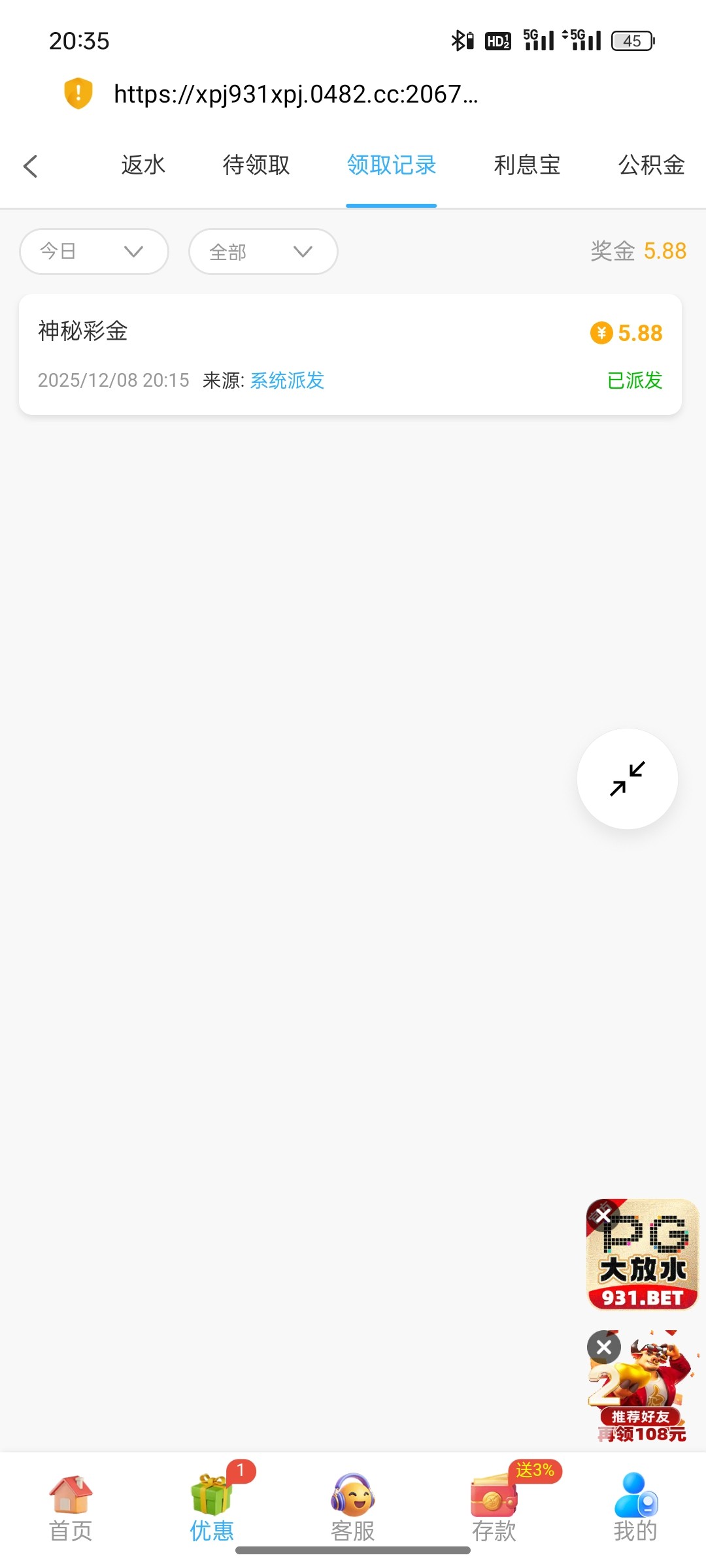 闲来无事看了看短信找了找链接无意中登上一看有5.88