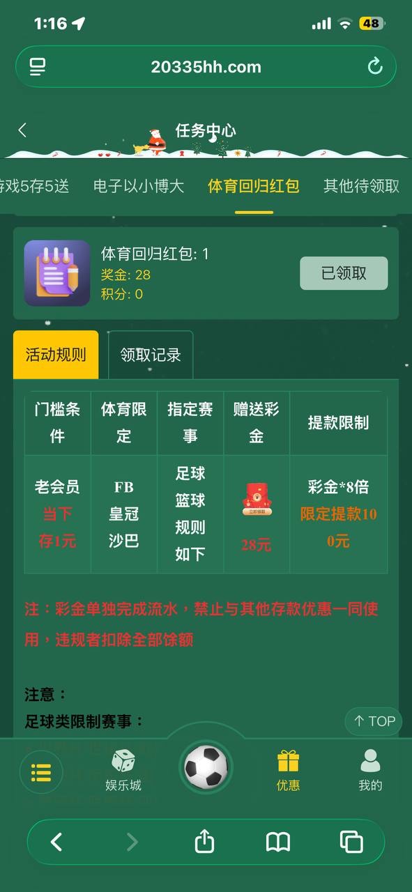 【CG体育】回归红包28元