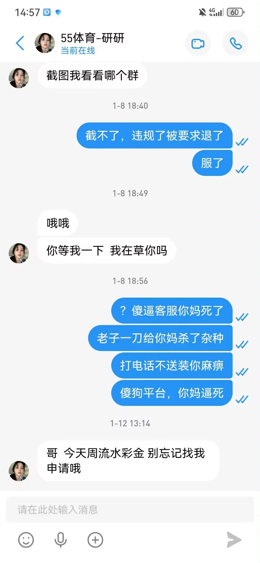 前段时间注册了没碰到,还和那个客服对骂,昨天打电话来特邀了,去找另一个客服领到了。我没打出来,体育台子概率黑,之前注册过的去碰瓷试试,查手机号,talkblink联系方式在图里