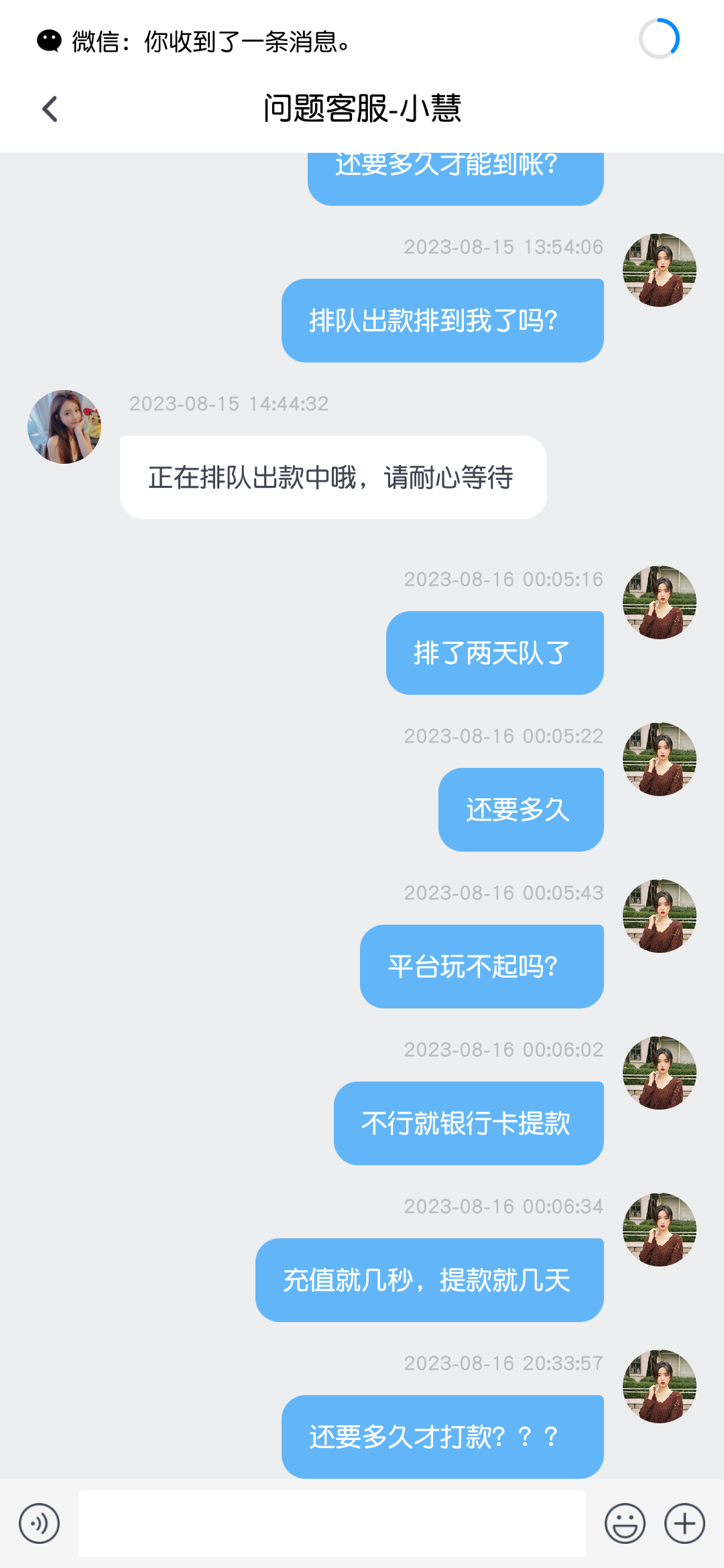 8月14号申请提款,8月16号还没到帐。客服不回复,黑台一个