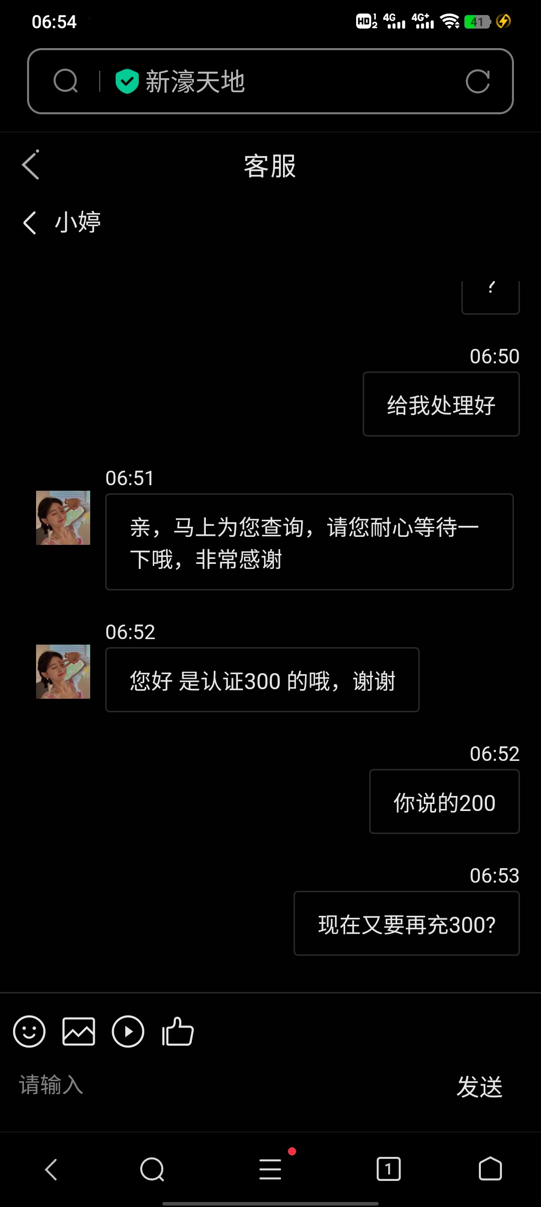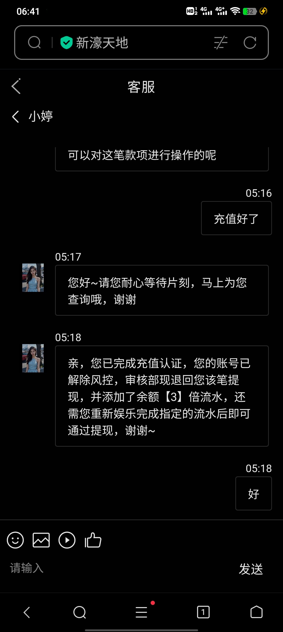 兄弟你没看嘛?我都发了别充值了黑台不过给我出了300 我充值100让我打700流水还好出款了