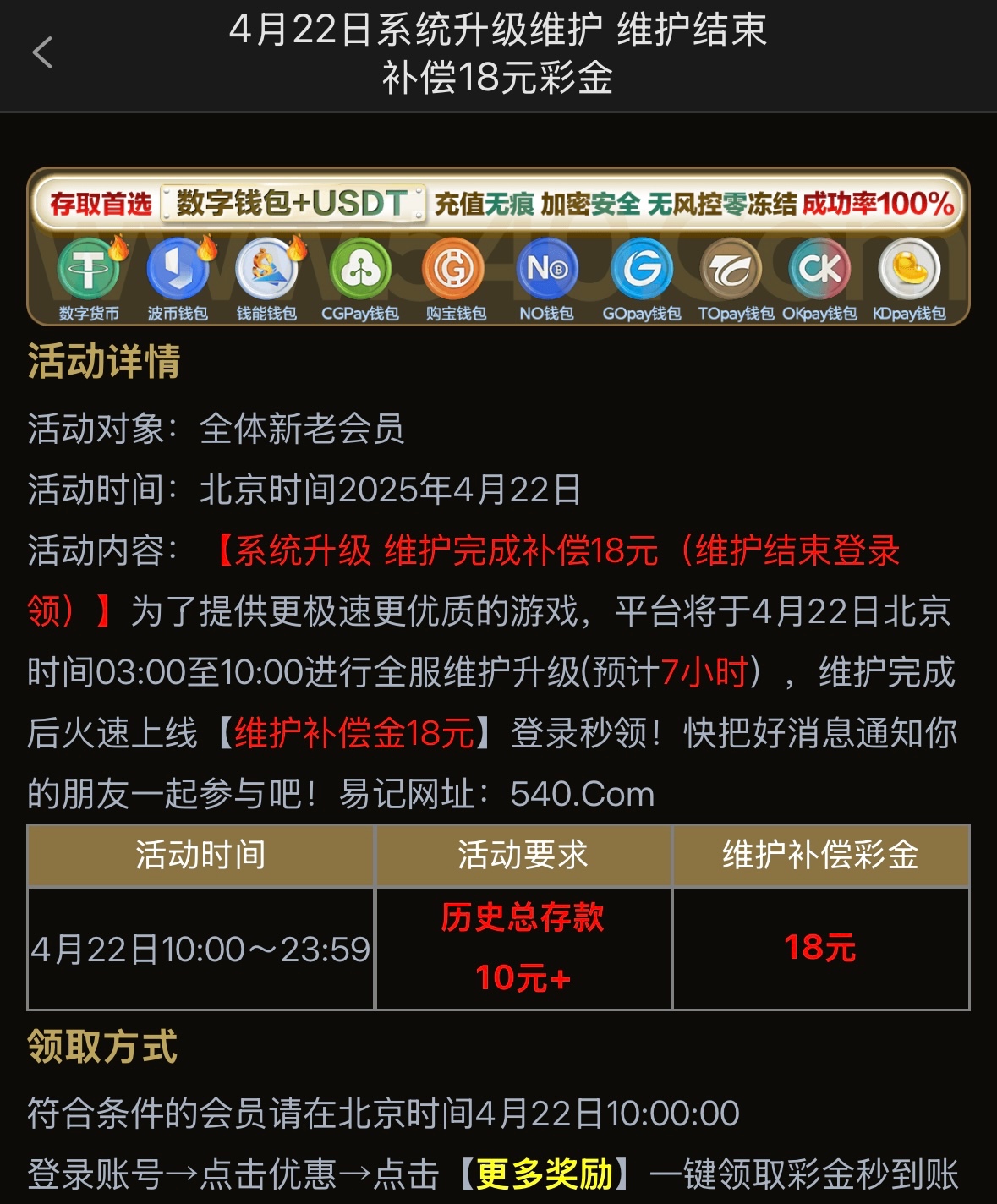 老用户之前有账号的上号领取维护18彩金 需有充值记录 具体自测吧