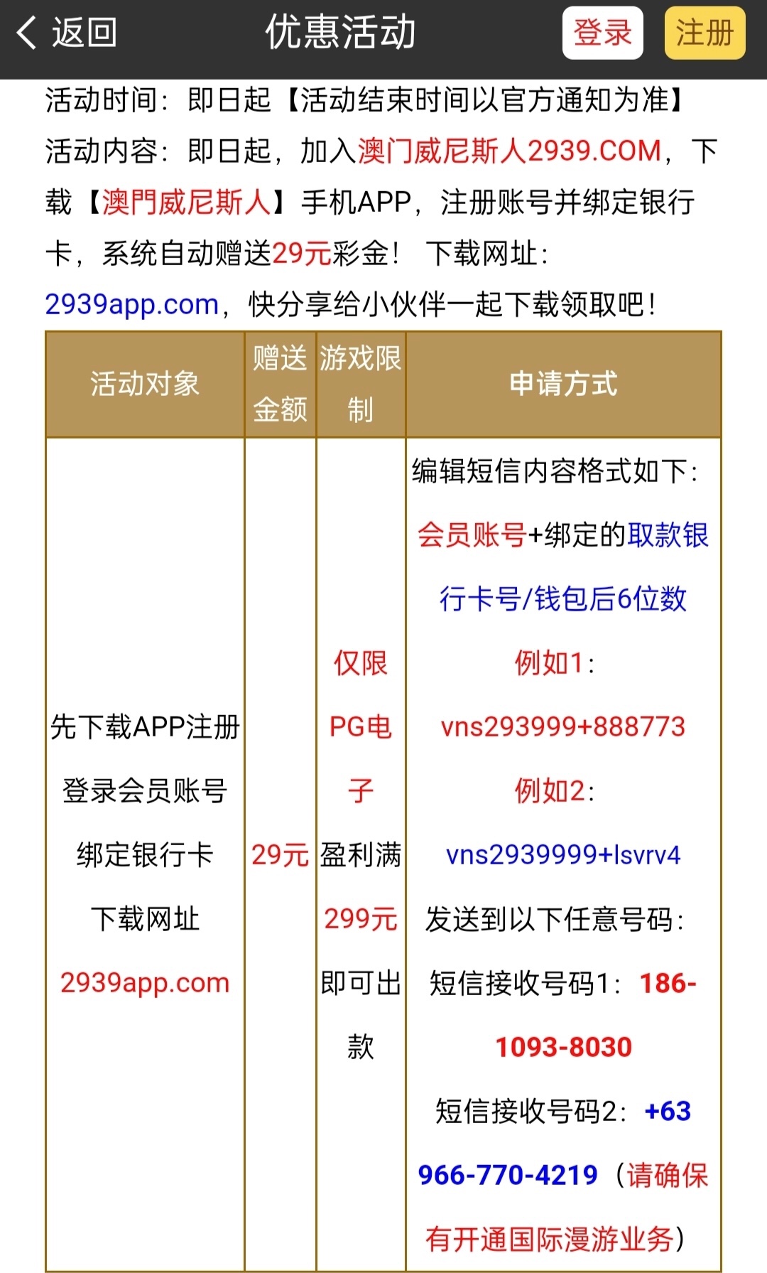 老白菜了,没玩过的去,新用户注册绑定信息根据提示发送短信申请29彩金,没送可以找客服问问,具体自测吧。